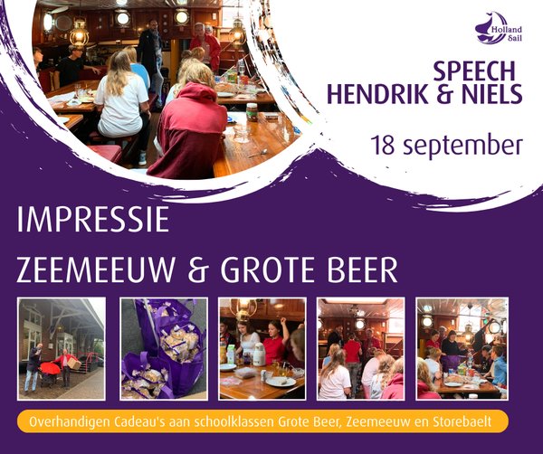 De leerlingen en docenten aan boord van de Grote Beer en de Zeemeeuw ontvingen stroopwafels met een Holland Sail-pen en een persoonlijke kaart. Ook voor de klas die inmiddels weer naar Duitsland is teruggekeerd, is een pakket samengesteld. Hiermee willen we laten zien dat we met alle leerlingen en docenten meeleven en dat zij er niet alleen voor staan.